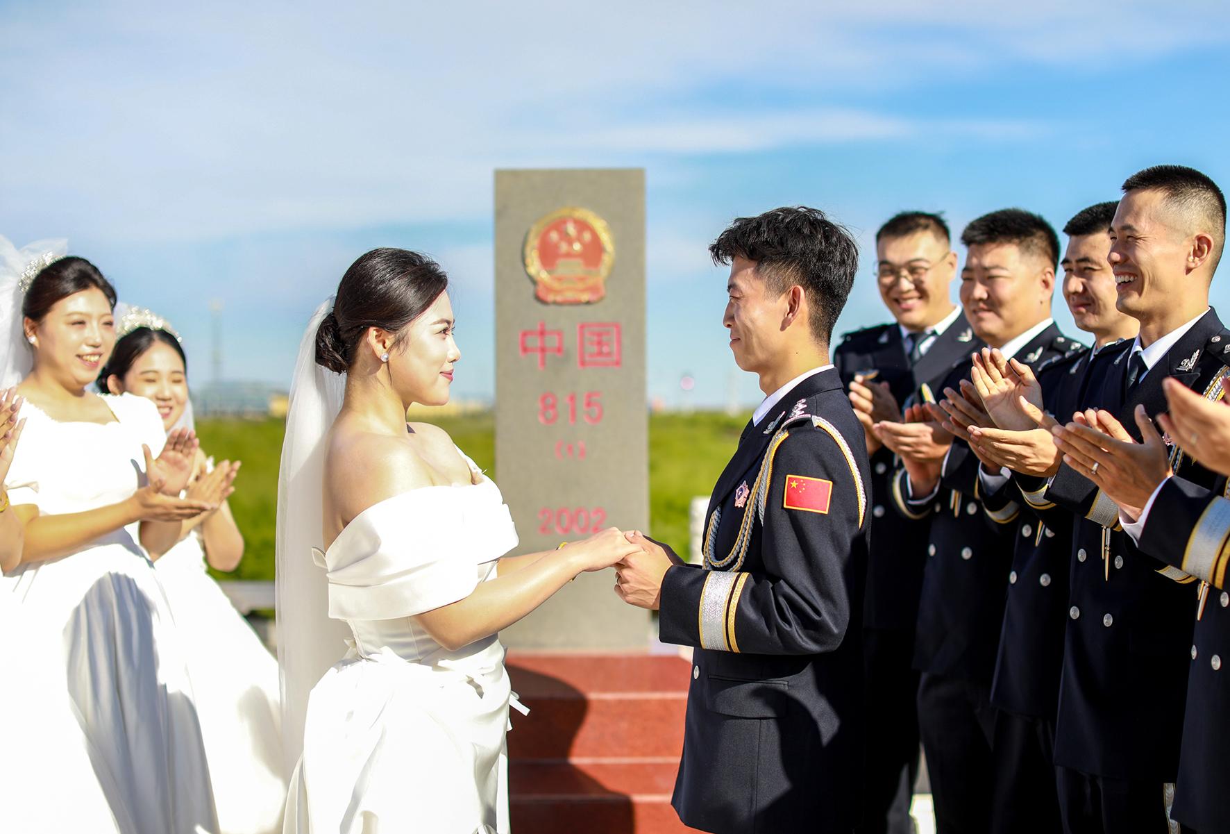 8月16日,內(nèi)蒙古出入境邊防檢查總站二連出入境邊防檢查站隆重舉辦第六屆“愛在北疆 情定國(guó)門”集體婚禮,9對(duì)新人在象征著國(guó)家主權(quán)與尊嚴(yán)的巍峨國(guó)門前,許下了“執(zhí)子之手 與子偕老”的誓言。
