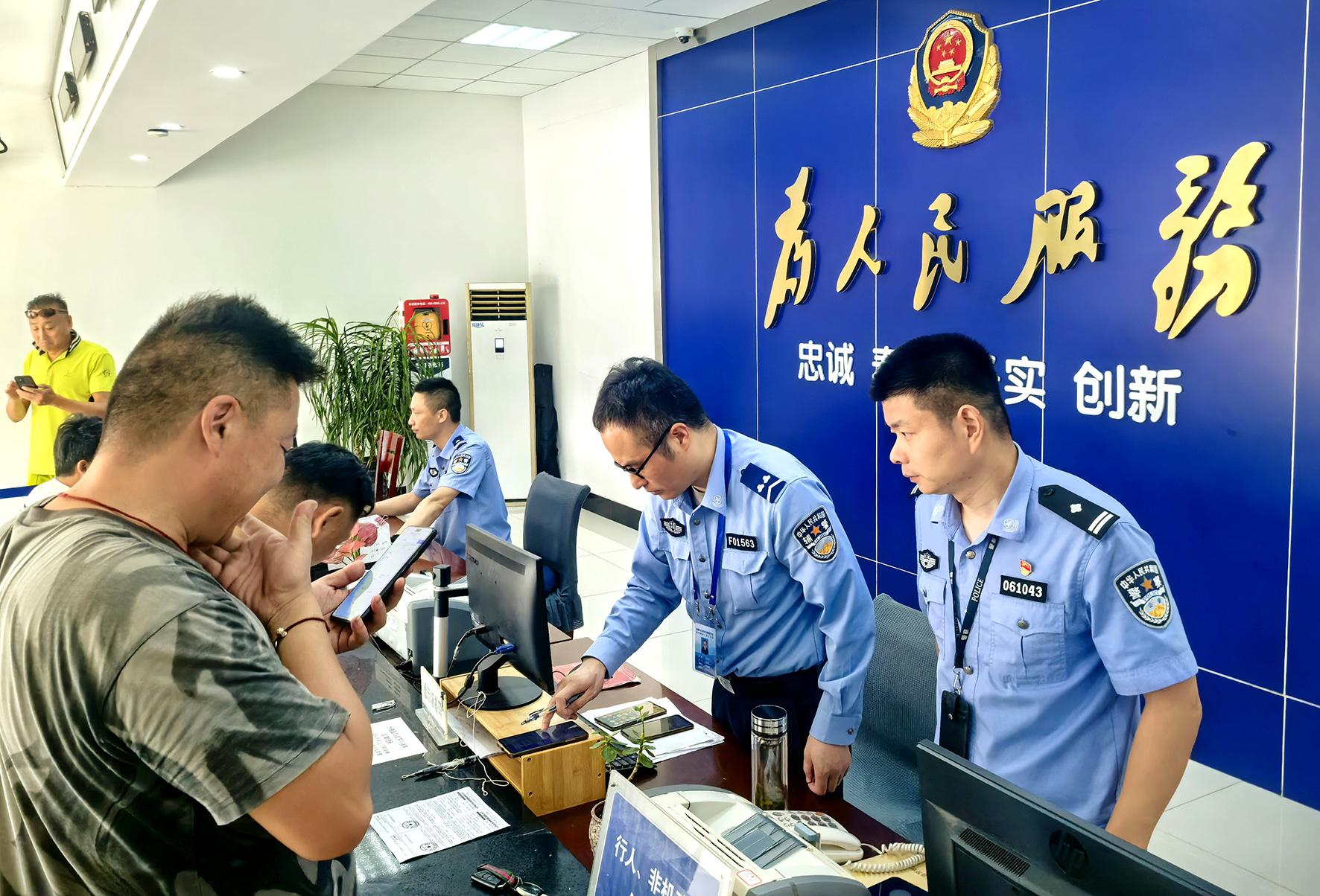 9月8日,江蘇省南通市公安局交通管理支隊四大隊民輔警在服務大廳為辦事群眾耐心細致服務。南通市公安局交通管理支隊四大隊主動厘清辦事項目和辦事程序,推進“網上辦、掌上辦”,實行一次性告知,避免群眾二次跑腿。