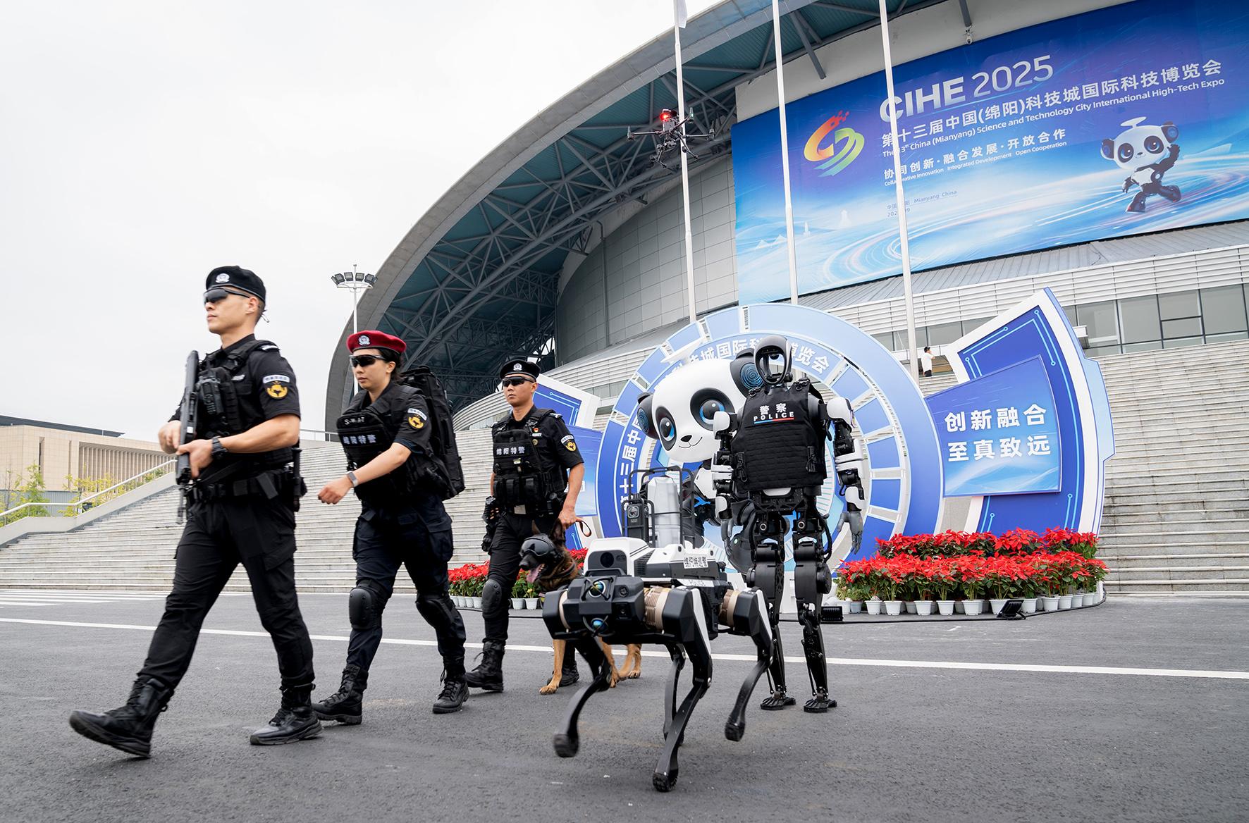 9月26日,第十三屆中國(綿陽)科技城國際科技博覽會(huì)開幕。四川省綿陽市公安局組織警力,全力筑牢科博會(huì)安全屏障。值得一提的是,警用機(jī)器狗、人形巡邏機(jī)器人、無人巡邏車及空中無人機(jī)的加入,為巡邏防控工作注入了全新的科技活力。