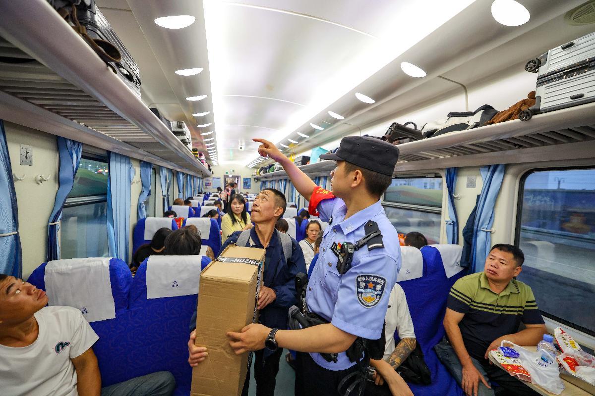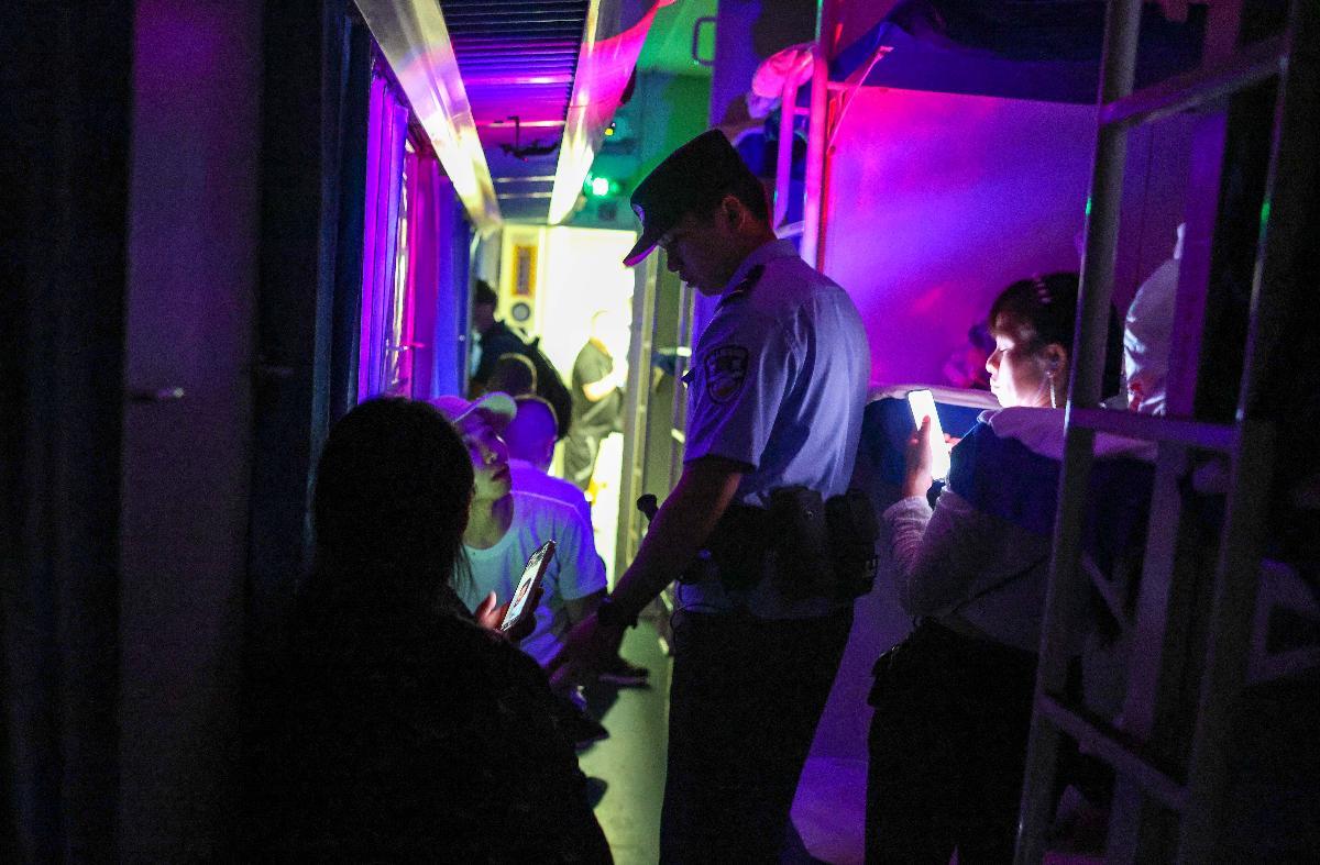 10月14日,劉濤在K845次列車臥鋪車廂開(kāi)展夜間巡查時(shí)提示旅客保管好貴重物品。