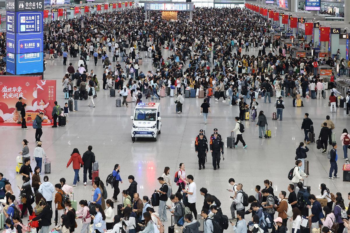 10月1日,西安鐵路公安局西安公安處科學(xué)部署警力,全力維護(hù)治安秩序穩(wěn)定,確保旅客出行安全。