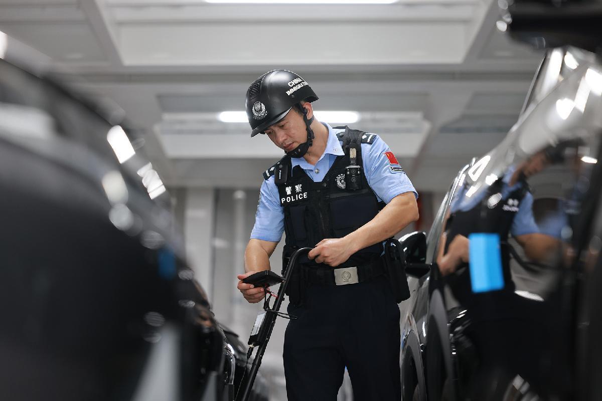10月2日,江蘇邊檢總站太倉(cāng)邊檢站民警對(duì)出口汽車進(jìn)行查驗(yàn)。