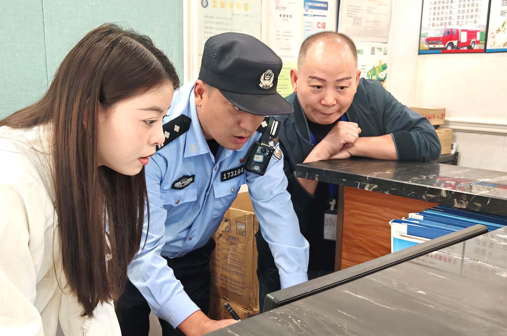 10月24日,浙江省臺(tái)州市公安局椒江分局府前派出所民警對(duì)旅館業(yè)的“四實(shí)”(實(shí)名、實(shí)數(shù)、實(shí)時(shí)、實(shí)情)登記進(jìn)行檢查。