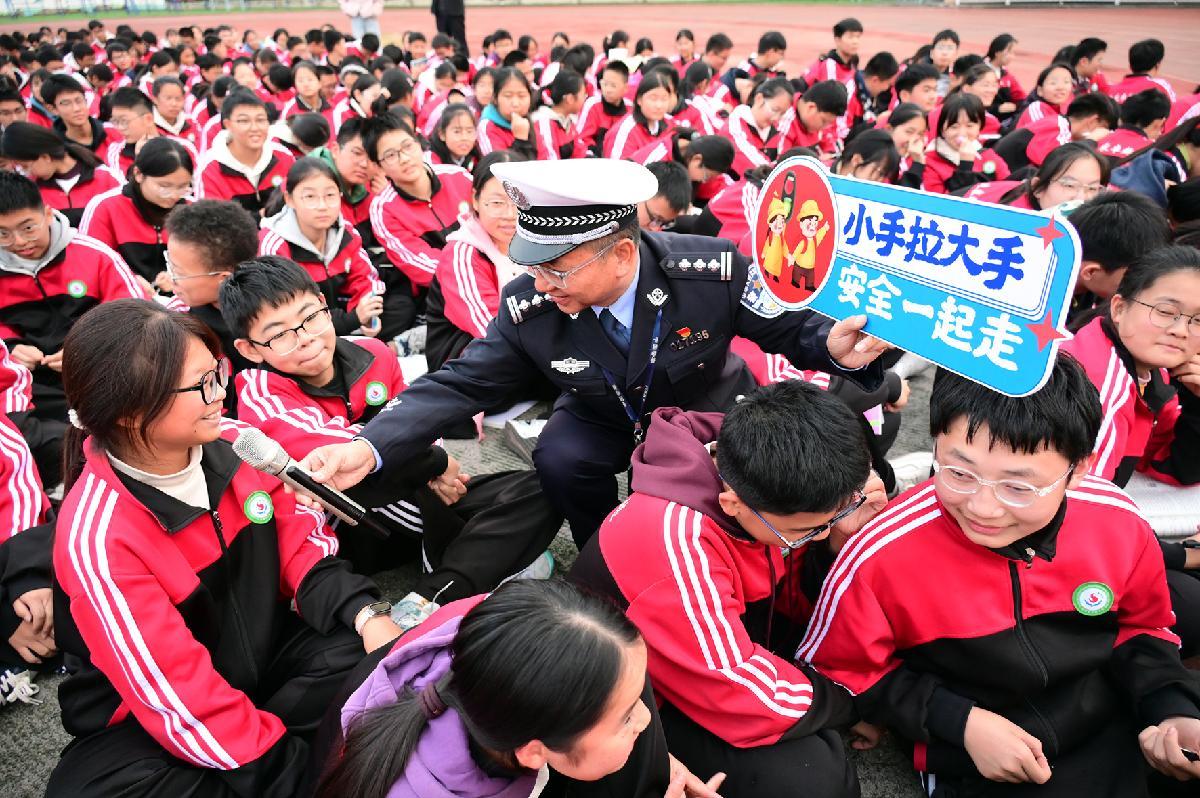 10月29日,安徽省固鎮(zhèn)縣公安局交管大隊民警在實驗中學(xué)為學(xué)生上交通安全課。