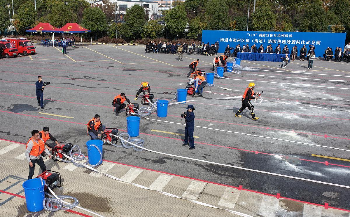 11月3日,江蘇省南通市通州區(qū)舉行“119”消防宣傳月啟動儀式暨鎮(zhèn)(街道)消防快速處置隊伍比武競賽活動。