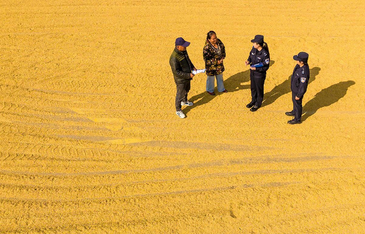 11月4日,安徽省馬鞍山市和縣公安局民警在歷陽(yáng)鎮(zhèn)向曬糧的村民開(kāi)展防范網(wǎng)絡(luò)電信詐騙宣傳。