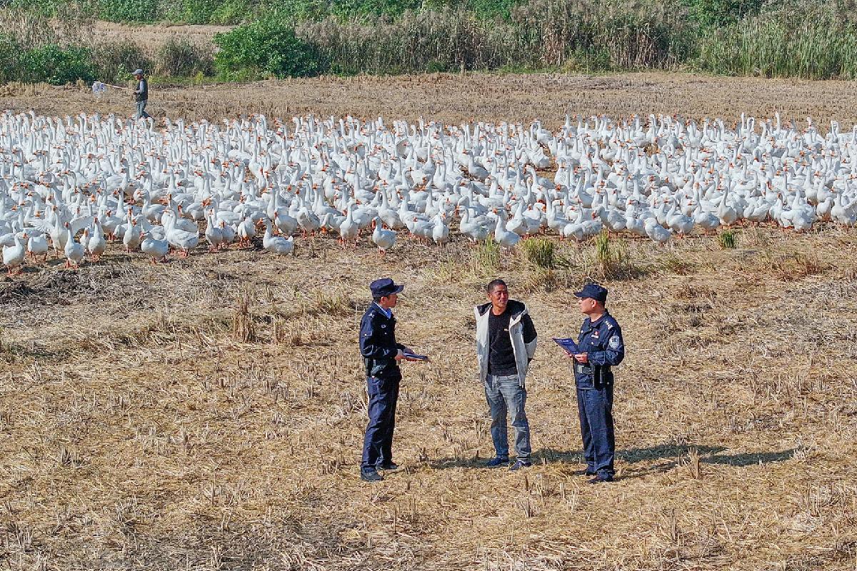 11月5日,安徽省馬鞍山市和縣公安局民警走訪大鵝養(yǎng)殖戶,了解治安狀況,傾聽(tīng)農(nóng)戶訴求,并針對(duì)性開(kāi)展法治宣傳。