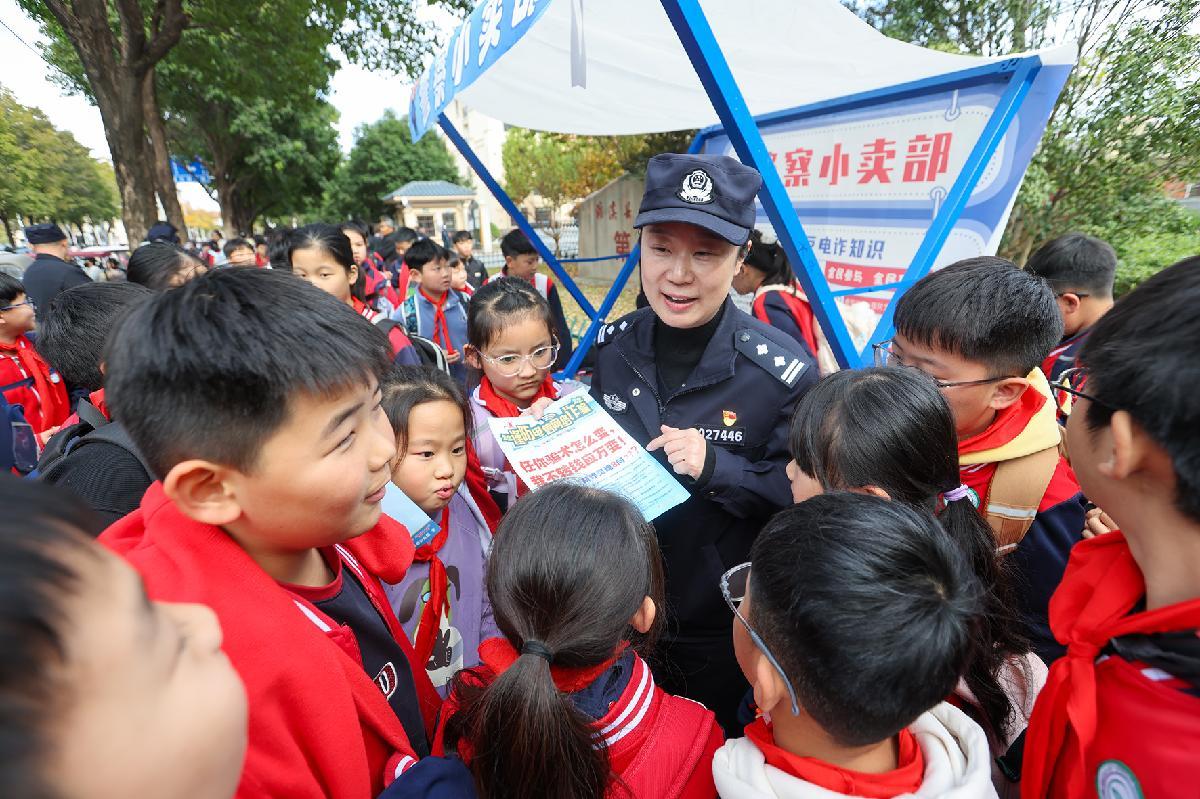 11月11日,安徽省濉溪縣公安局組織民輔警走進學校開展反詐宣傳。