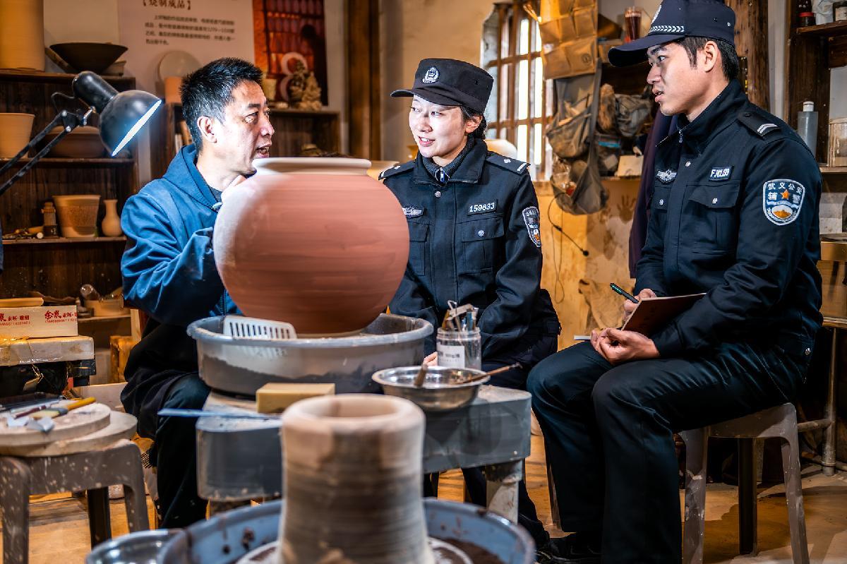 11月14日,浙江省武義縣公安局壺山派出所民輔警走訪非遺工坊,傾聽(tīng)他們對(duì)公安工作的需求,宣傳知識(shí)產(chǎn)權(quán)保護(hù)法律法規(guī),當(dāng)好非遺傳承發(fā)展守護(hù)者。