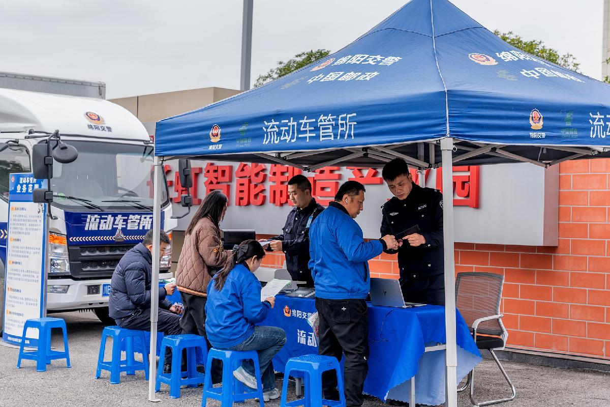 11月18日,四川省綿陽(yáng)市公安局交通警察支隊(duì)將“流動(dòng)車管所”搬進(jìn)綿陽(yáng)市高新區(qū)產(chǎn)業(yè)園,為企業(yè)員工帶來(lái)廠門口的車駕管服務(wù)。