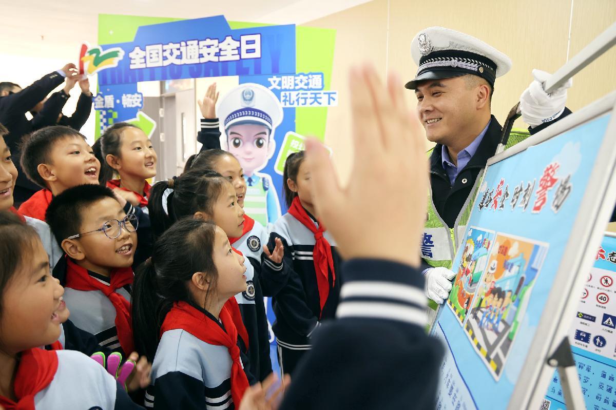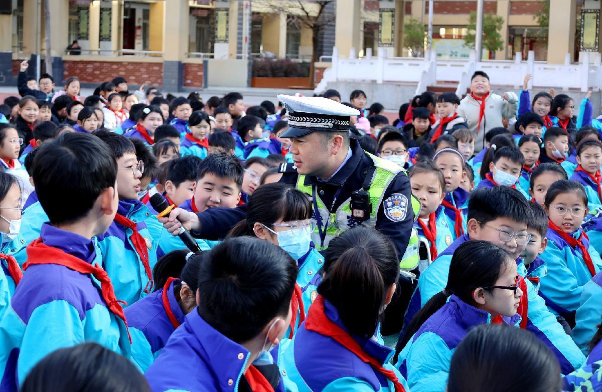 12月1日,江蘇省徐州市蘇堤路小學開展“文明交通伴‘童’行”主題活動,邀請被同學們親切地稱為“交警爺爺”的退休警察陳孟軍來校講解交通安全知識。