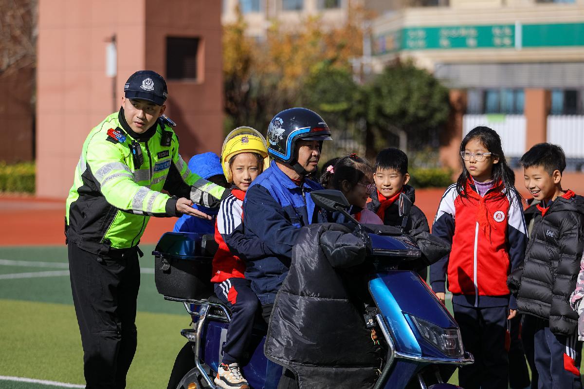 12月2日,山東省濟(jì)南市公安局市中分局六里山派出所民警來到濟(jì)南市玉函小學(xué),開展“全國交通安全日”主題宣傳。