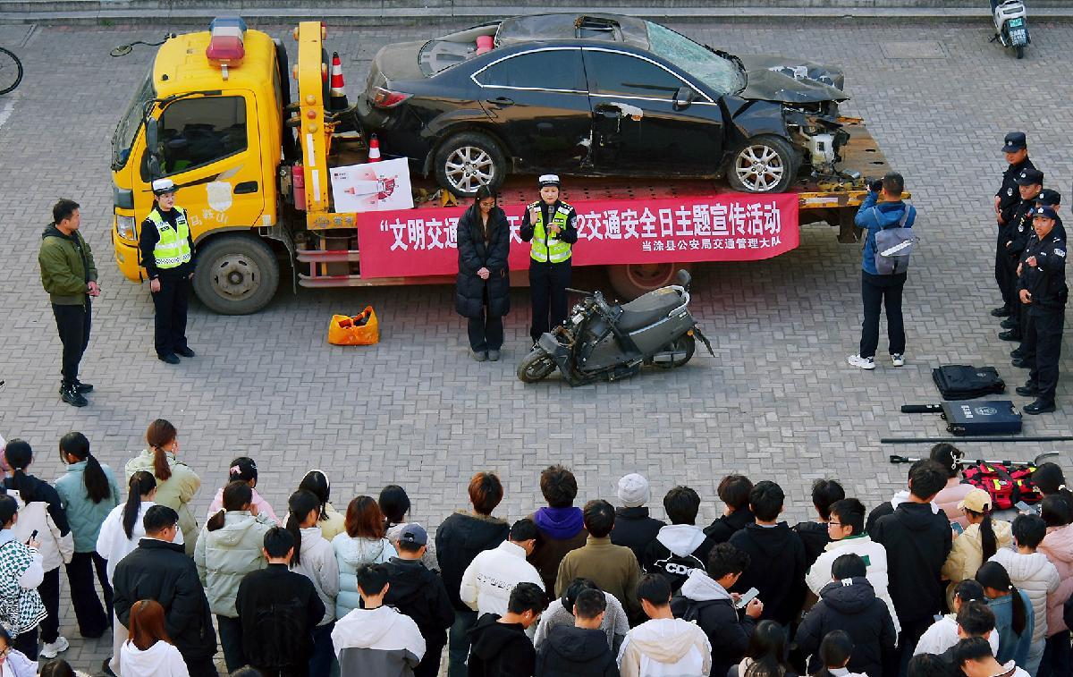 12月1日,安徽省當(dāng)涂縣公安局交管大隊民警走進(jìn)馬鞍山學(xué)院開展“全國交通安全日”主題宣傳。