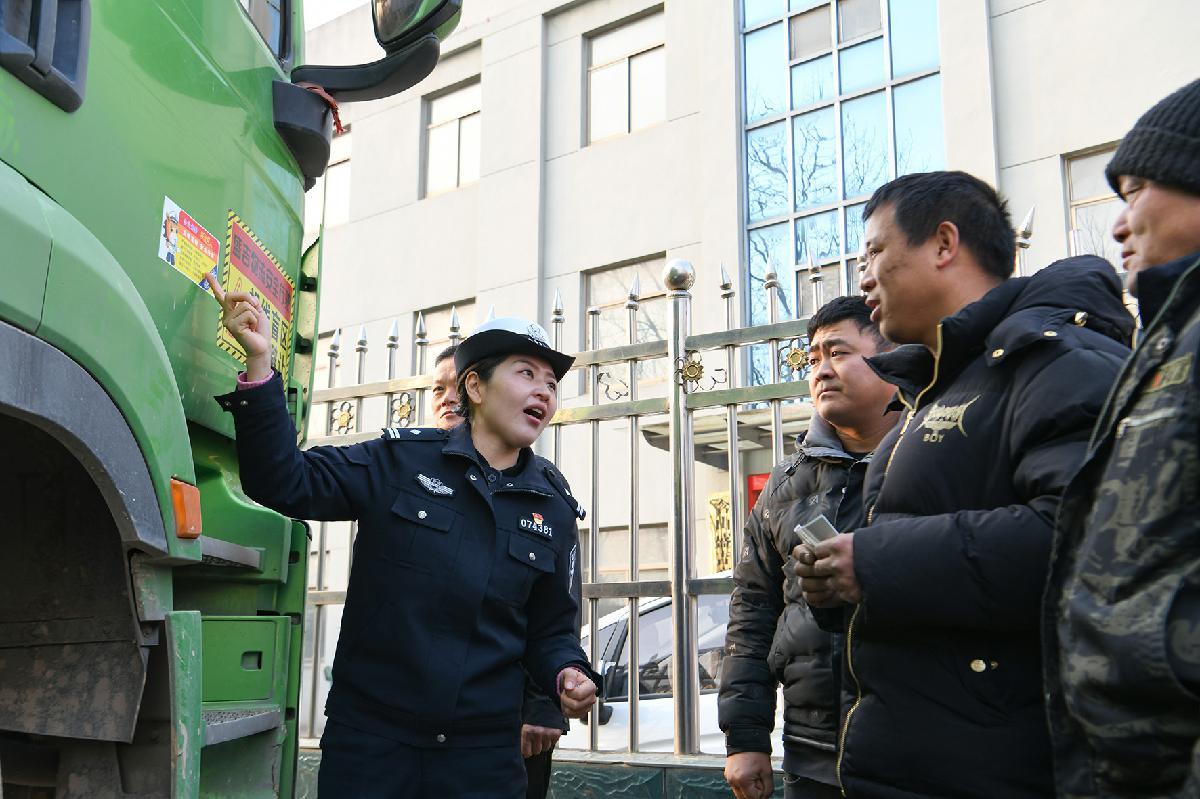 圖為民警向駕駛員重點(diǎn)解讀主城區(qū)貨車通行管理的相關(guān)規(guī)定及冬季行車安全注意事項(xiàng)。