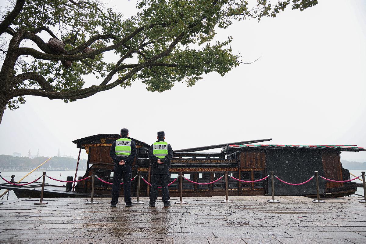 圖為民輔警在南湖“紅船守護(hù)崗”執(zhí)勤。