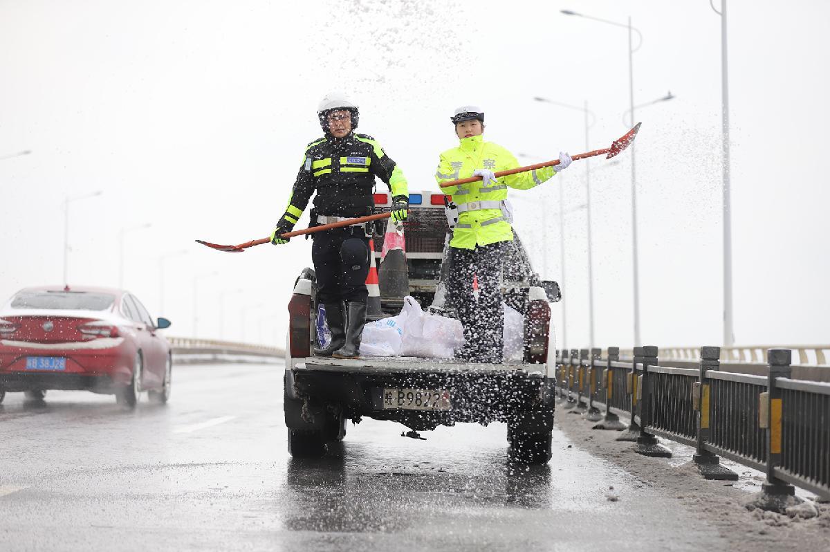 1月20日,安徽省巢湖市公安局交管大隊全警動員,全力應對降雪、結冰天氣,加強路面交通安全管理,確保安全暢通。