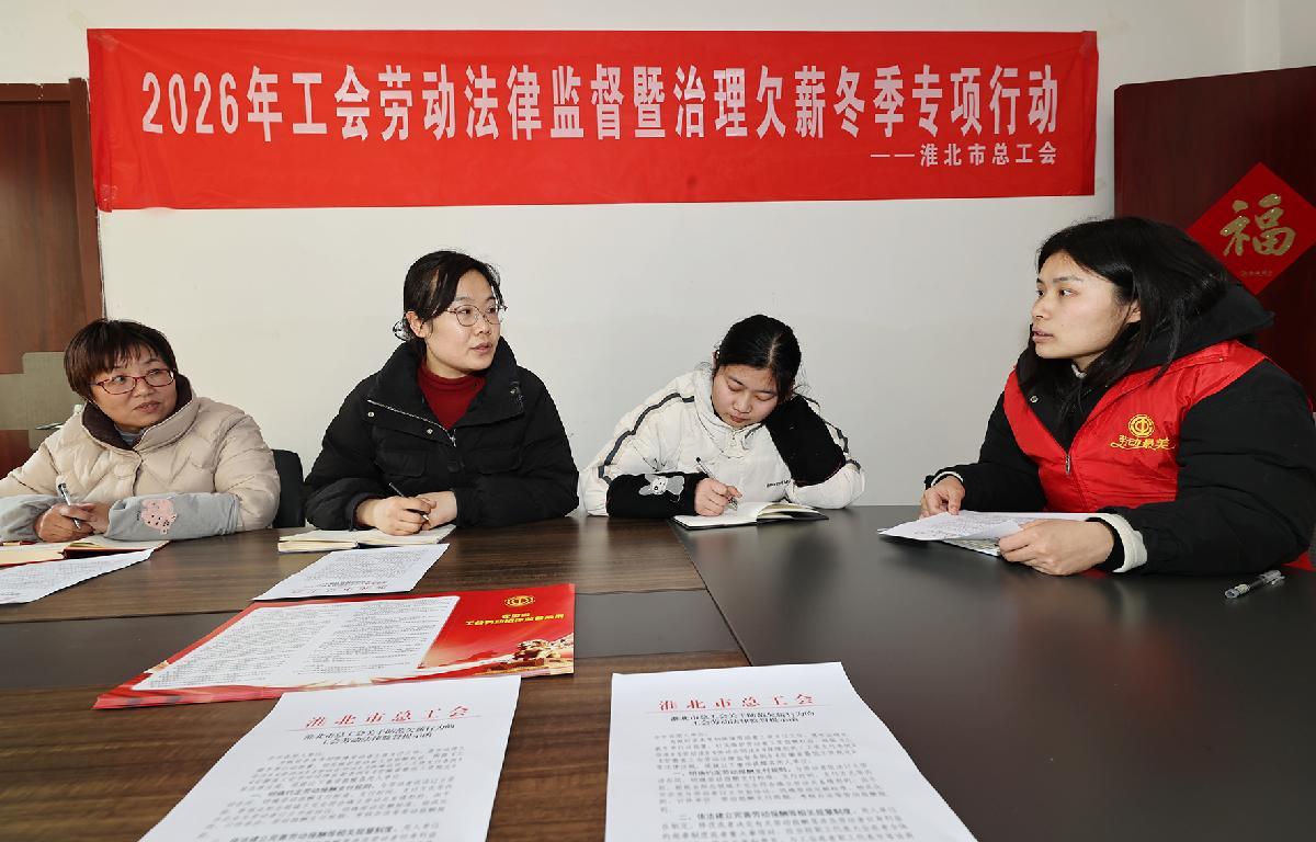 1月22日,安徽省淮北市總工會組織工會勞動法律監(jiān)督員深入相山經(jīng)濟(jì)開發(fā)區(qū)重點企業(yè),開展2026年工會勞動法律監(jiān)督暨治理冬季欠薪專項行動。