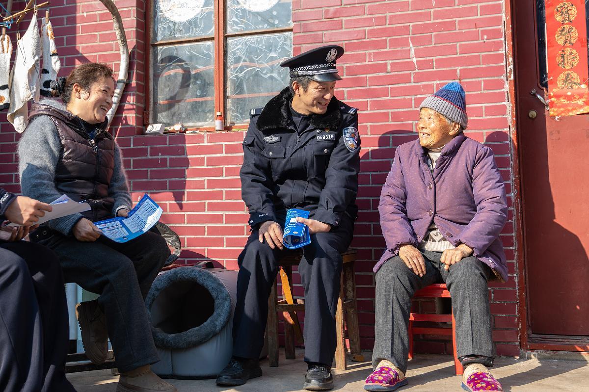 圖為民警與轄區(qū)農(nóng)戶(hù)促膝長(zhǎng)談,傾聽(tīng)意見(jiàn)建議。