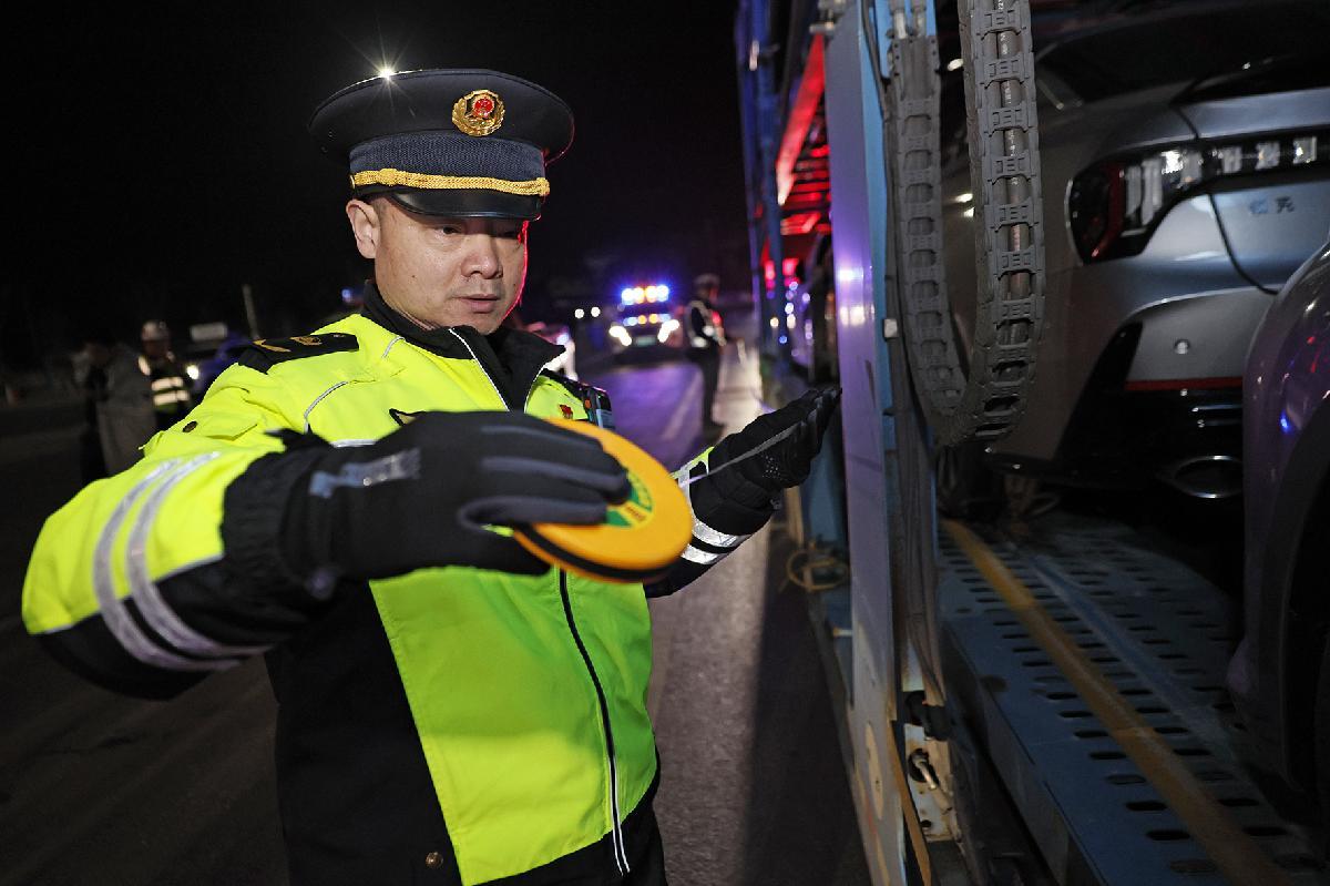 2月4日,安徽省合肥市公安局交管支隊聯(lián)合路政執(zhí)法等部門在境內高速服務區(qū)開展轎運車違法查處“利劍行動”,全力保障春運期間道路安全暢通。