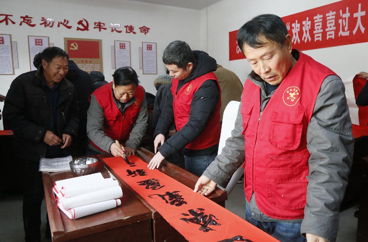 2月10日,河南省汝陽縣司法局組織文藝志愿者到柏樹鎮(zhèn)水磨村義務(wù)書寫法治春聯(lián),為村民送上新春祝福。