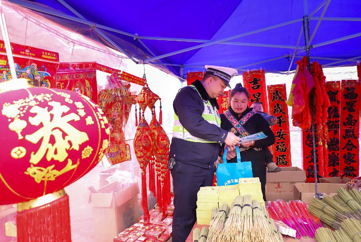 2月11日,貴州省丹寨縣公安局交通管理大隊(duì)巧借農(nóng)村“趕集日”,向群眾宣講交通安全知識(shí)。