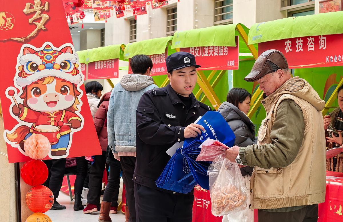 2月10日,上海市公安局崇明分局橫沙派出所民警在轄區(qū)“2026新春送?!被顒?dòng)現(xiàn)場(chǎng)向群眾開展反詐宣傳。