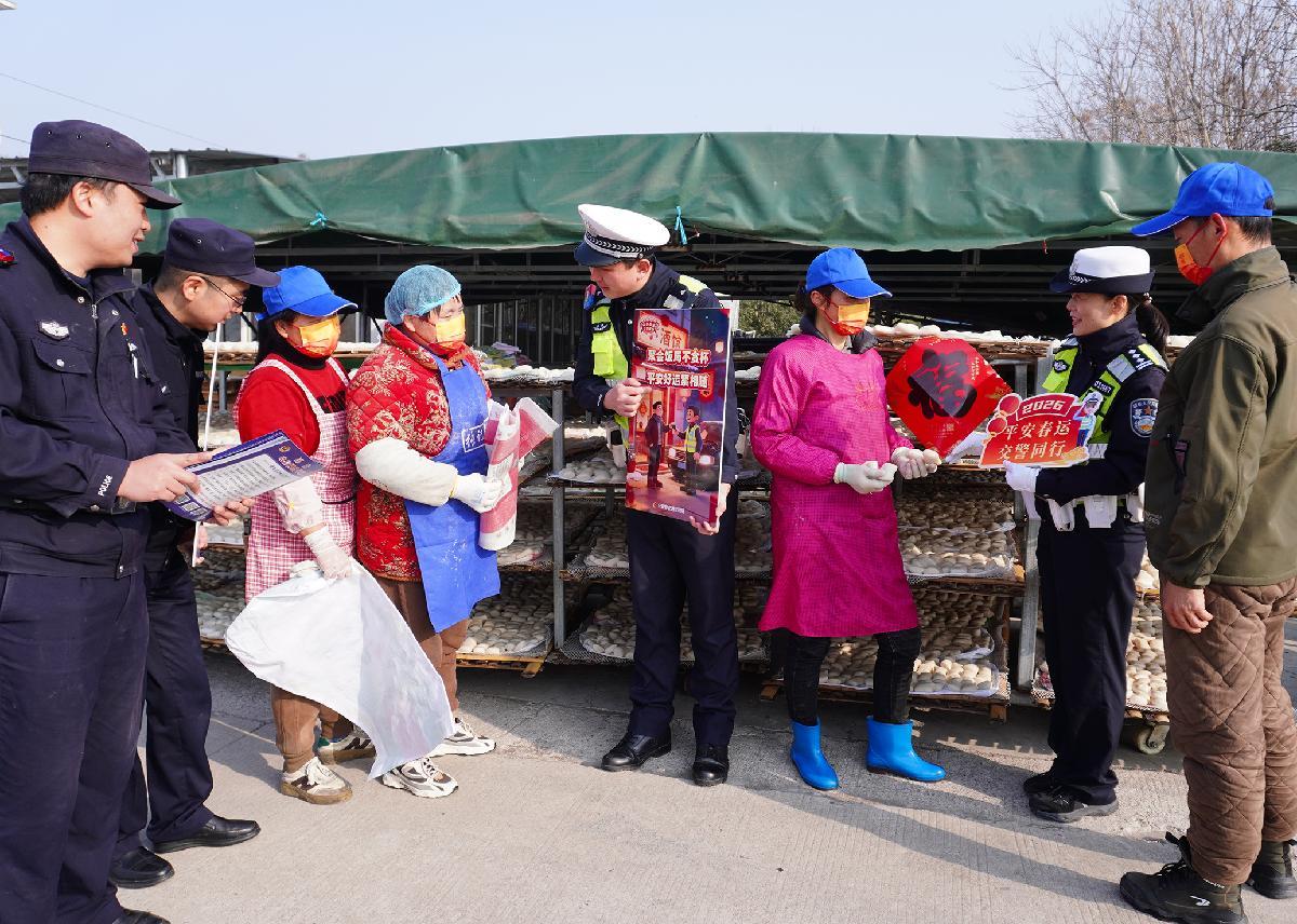 2月11日,安徽省蕪湖市公安局鏡湖交管大隊(duì)、方村派出所組織民輔警來到年糕坊走訪,并向群眾宣講安全防范知識(shí)。