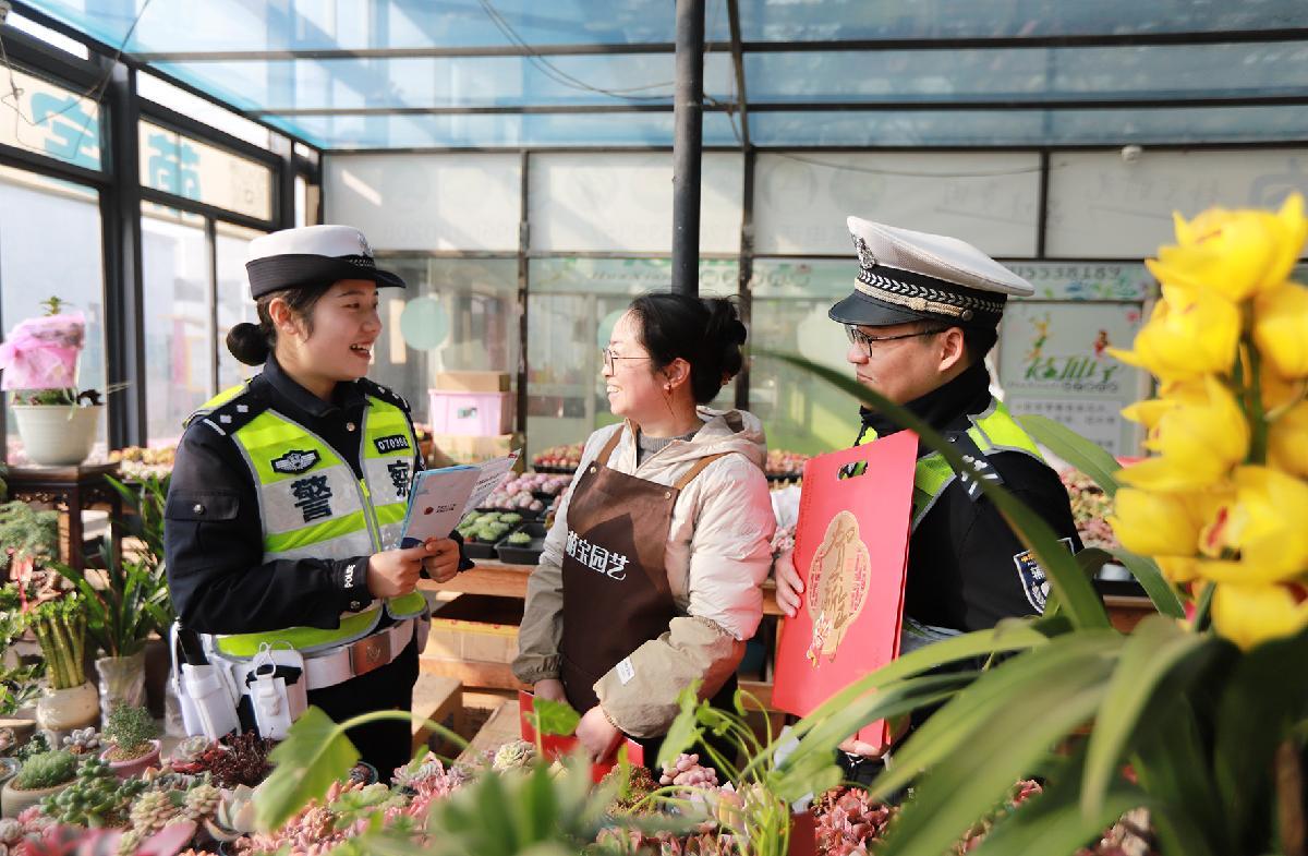2月11日,安徽省蕪湖市公安局交管支隊(duì)弋江大隊(duì)組織民輔警來到花卉、年貨市場(chǎng),開展“平安春運(yùn) 交警同行”交通安全知識(shí)宣傳。