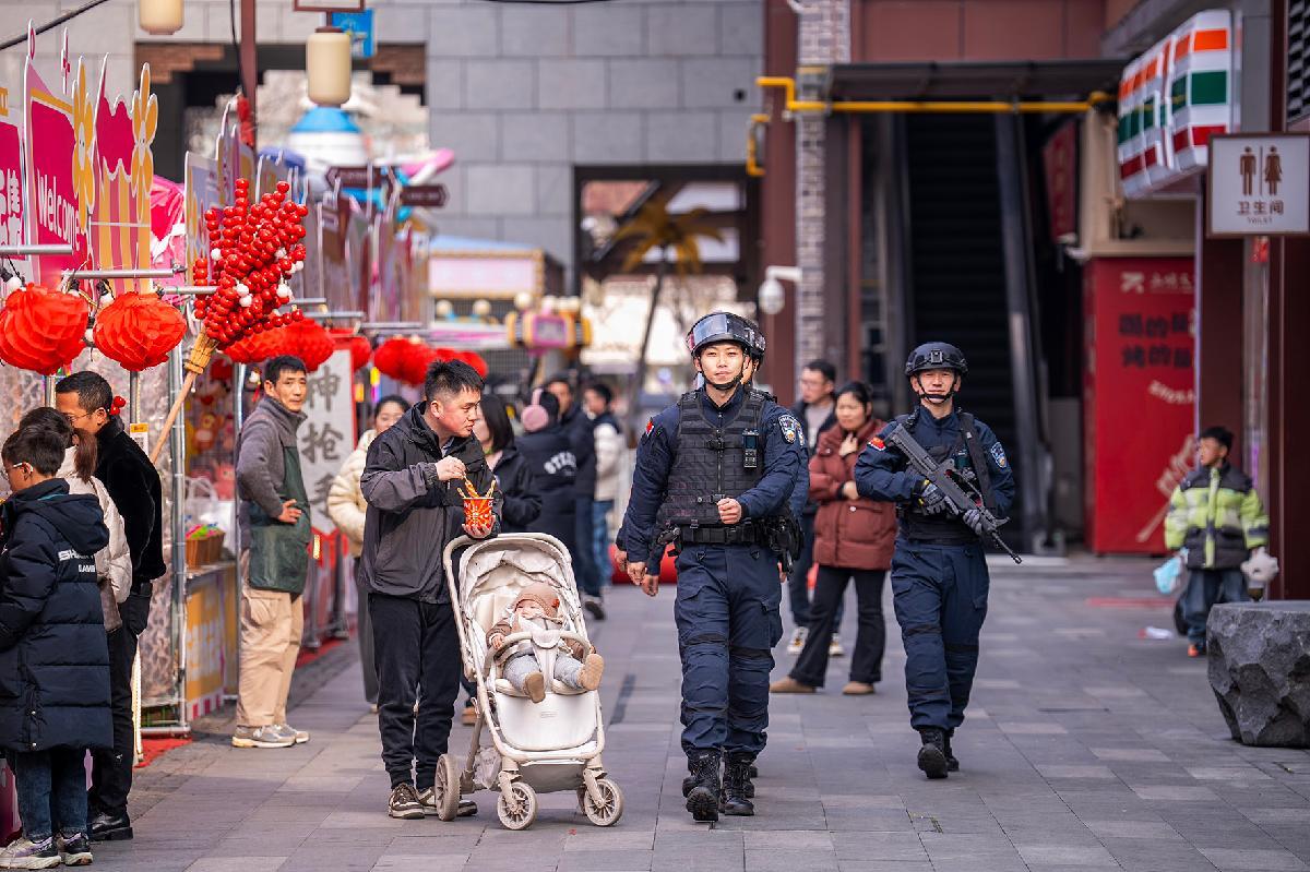 2月11日,浙江省長(zhǎng)興縣公安局巡特警大隊(duì)積極開展街面巡邏工作,全力筑牢新春安全防線。
