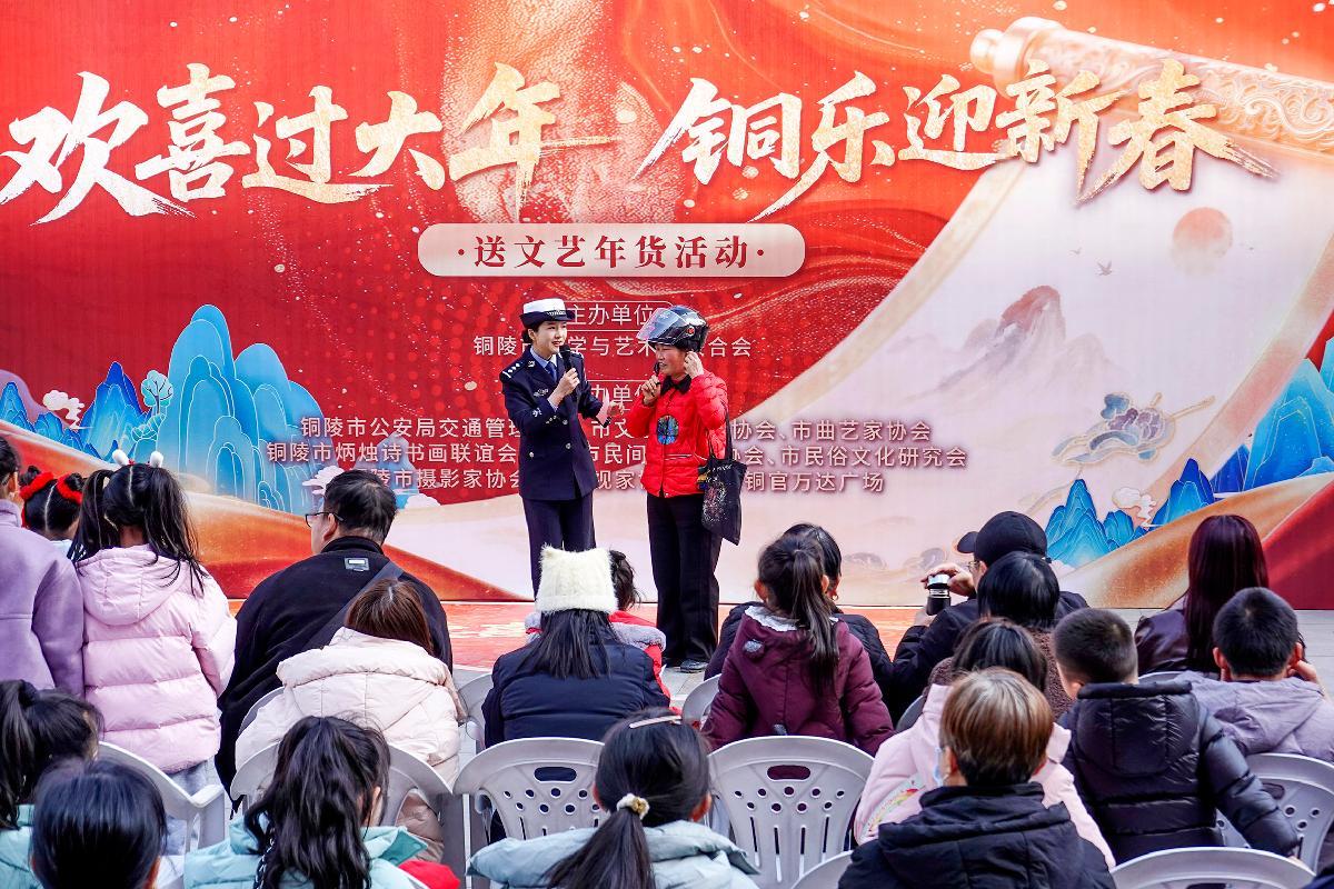 2月11日,安徽省銅陵市公安局交管支隊(duì)宣傳民警在“歡喜過大年 銅樂迎新春”銅都文藝集市活動(dòng)現(xiàn)場,通過交通安全有獎(jiǎng)競答、宣傳展臺講解、警民共創(chuàng)平安春聯(lián)等形式,將安全出行知識融入新春祝福,讓市民在喜慶氛圍中提升交通安全意識,共度平安祥和春節(jié)。