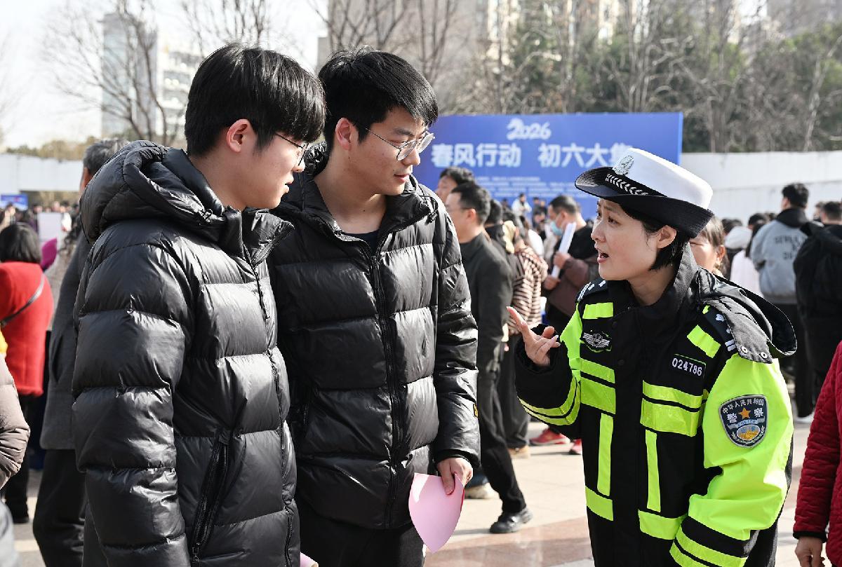 2月23日,安徽省寧國(guó)市公安局民輔警在2026年“春風(fēng)行動(dòng)”暨就業(yè)援助季系列活動(dòng)現(xiàn)場(chǎng)巡邏執(zhí)勤。