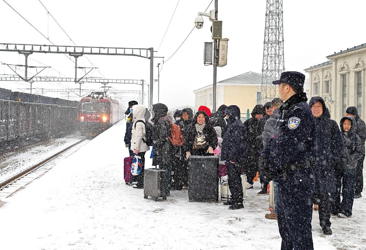 2月22日,吉林省白城市迎來(lái)降雪天氣。沈陽(yáng)鐵路公安局白城公安處以雪為令,啟動(dòng)惡劣天氣應(yīng)急處置預(yù)案,全面強(qiáng)化站車秩序維護(hù)、線路治安巡查工作,確保旅客乘車安全、管內(nèi)線路暢通。