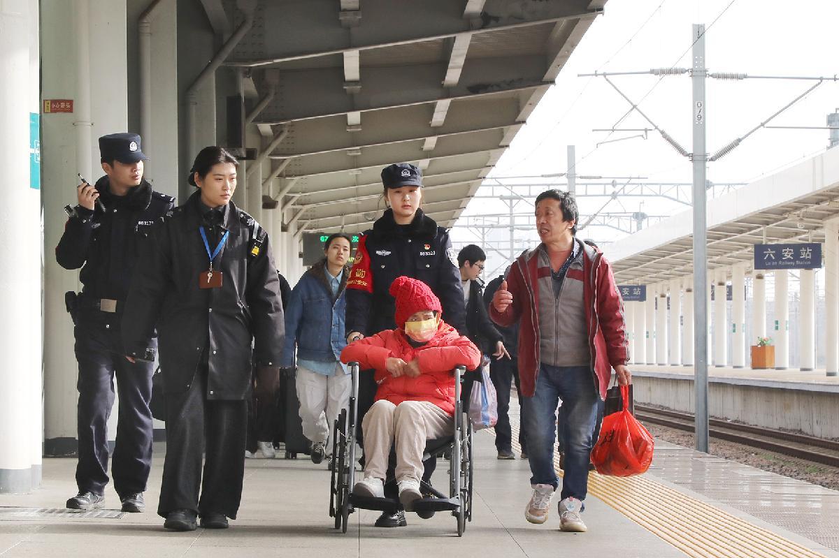 2月22日,安徽省六安火車站迎來(lái)返程客流高峰。上海鐵路公安局合肥鐵路公安處六安站派出所攜手六安火車站,持續(xù)優(yōu)化便民服務(wù)舉措,全力提升旅客乘車體驗(yàn),讓返程之路更舒心、更便捷。