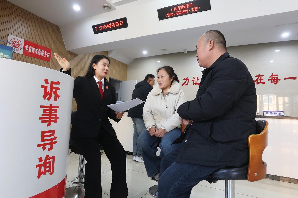 圖為訴訟服務大廳工作人員為前來辦事的群眾提供導訴服務。
