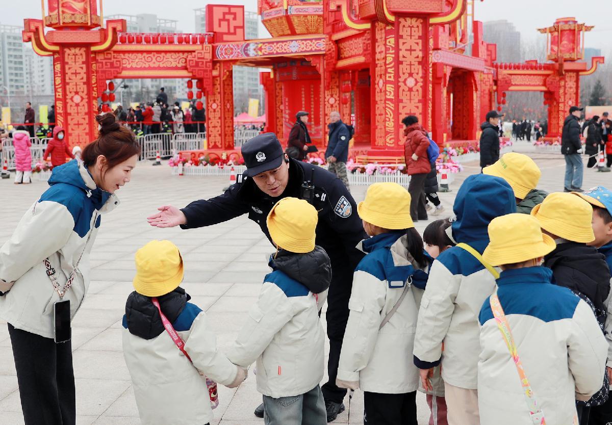 2月26日,山東省煙臺市公安局萊山分局民輔警在慶新春民間秧歌展演暨非遺大集活動現(xiàn)場進行服務(wù)保障工作。