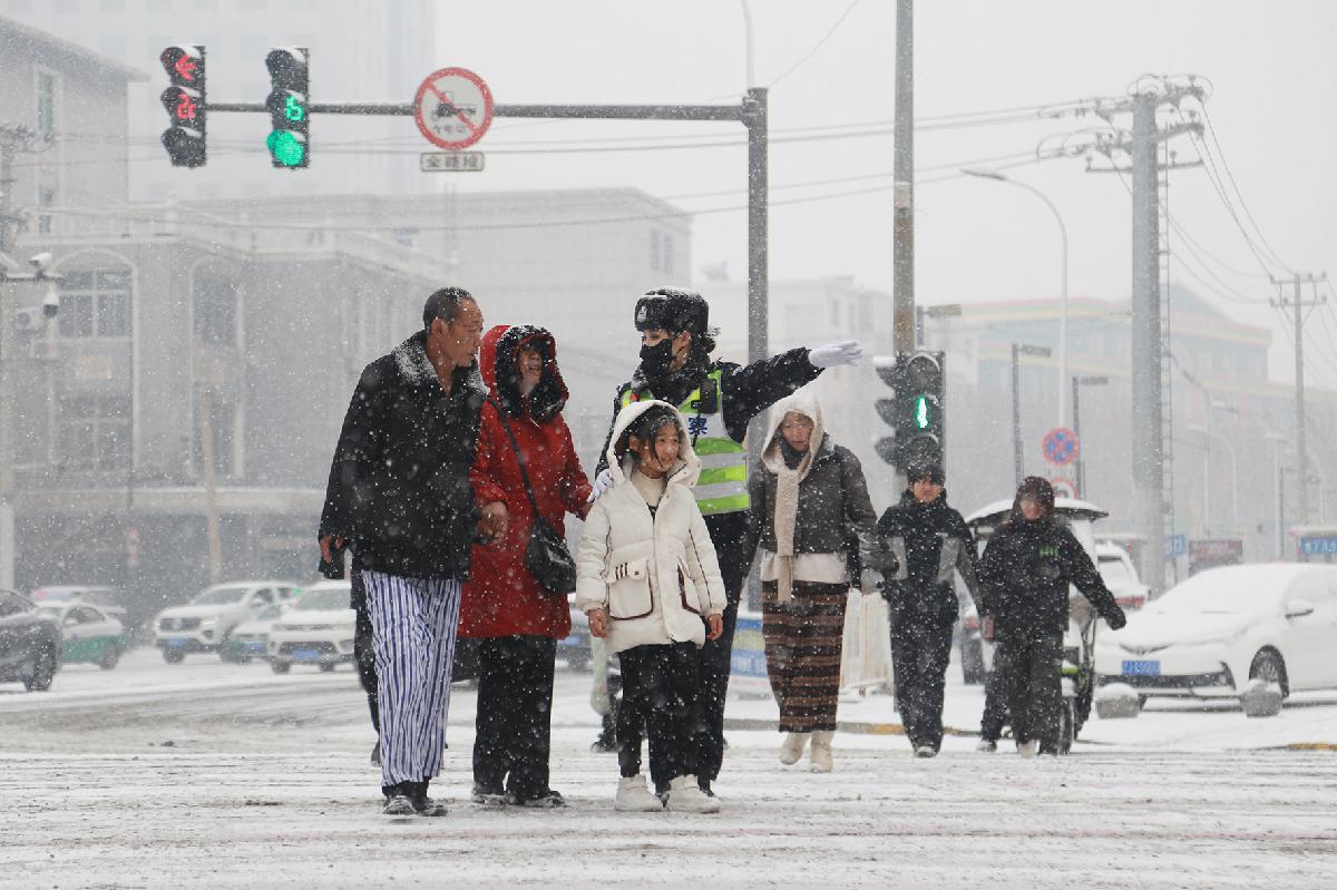 3月3日,遼寧省阜新市公安局交管支隊(duì)海州大隊(duì)女騎中隊(duì)民輔警冒雪執(zhí)勤。