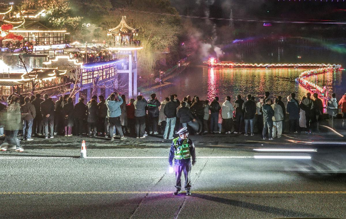 3月1日,四川省綿陽市公安局民警在元宵節(jié)活動現(xiàn)場定點(diǎn)值守,疏導(dǎo)人流、維護(hù)秩序。