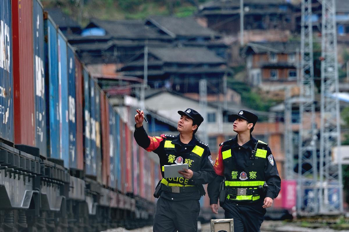 圖為2月28日民警在三江侗族自治縣境內(nèi)的八斗火車站進(jìn)行治安巡查。