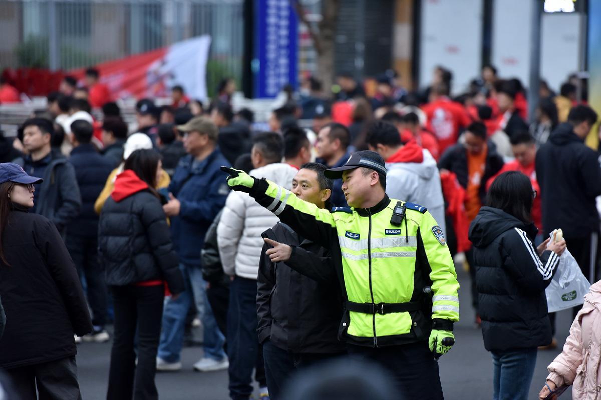 3月14日,2025-2026“川超”聯(lián)賽綿陽賽區(qū)第二階段(決賽階段)在四川省綿陽市南河體育中心燃情開賽。綿陽市公安局統(tǒng)籌警力、精準施策,全程守護賽事安全。