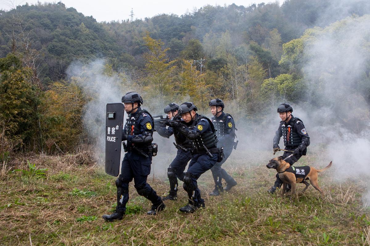 圖為3月23日,巡特警隊員在野外開展小組搜捕戰(zhàn)術演練。