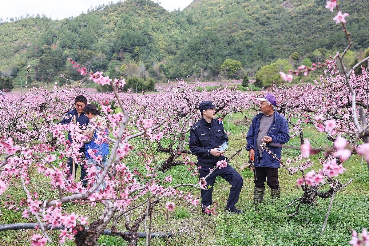 4月1日,浙江省三門縣公安局海潤派出所創(chuàng)新“村社治理”春耕警務模式,組織民警與網(wǎng)格員深入田間地頭走訪宣傳,護航春耕生產(chǎn)。