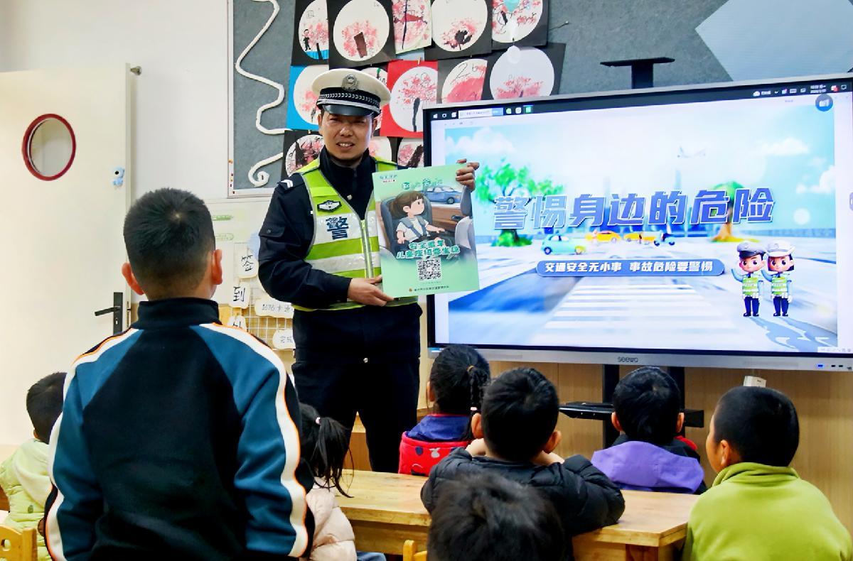 3月30日,安徽省亳州市公安局民警走進(jìn)開放大學(xué)附屬幼兒園,通過警示視頻、手勢操、兒歌等趣味互動(dòng),向萌娃們講解交通安全知識。