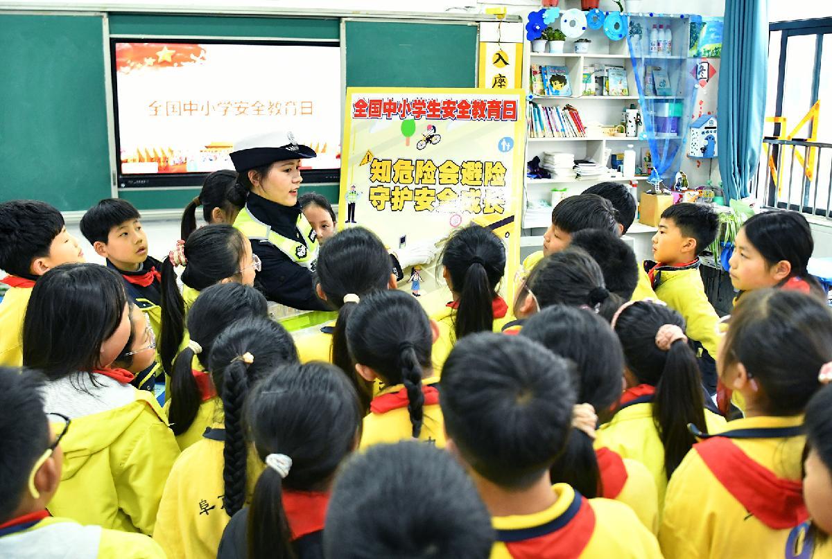 3月30日,安徽省阜南縣公安局交管大隊(duì)組織民輔警走進(jìn)轄區(qū)中小學(xué)校,開展全國中小學(xué)生安全教育日宣傳活動(dòng)。