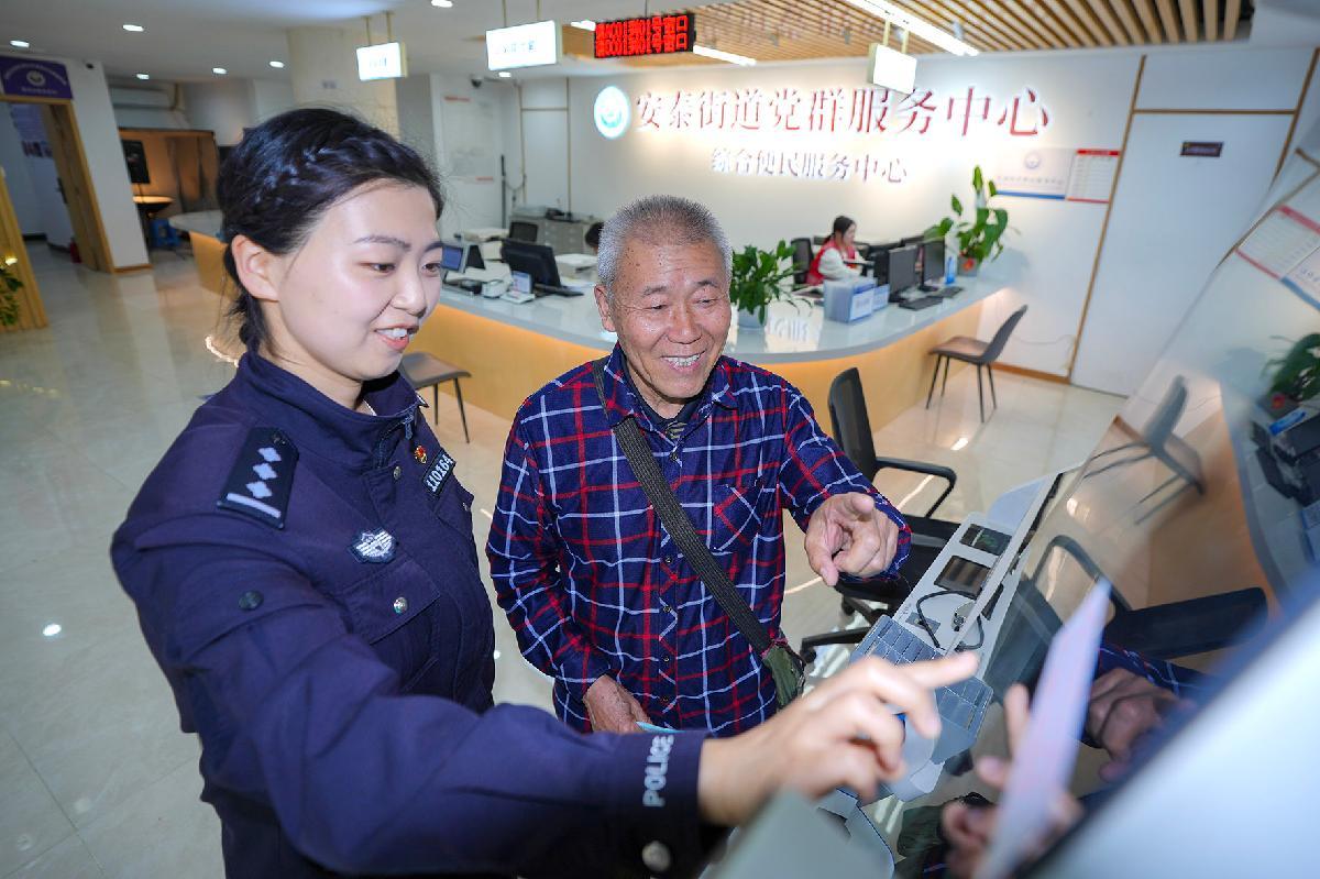4月2日,在福建省福州市鼓樓區(qū)安泰街道黨群服務(wù)中心,福州市公安局鼓樓分局安泰派出所民警指導(dǎo)群眾使用便民服務(wù)終端。近日,安泰街道推動(dòng)綜治、警務(wù)與政務(wù)服務(wù)融合,將戶籍、身份證等公安高頻事項(xiàng)與社保、民政等業(yè)務(wù)納入同一大廳,實(shí)現(xiàn)“一站式受理”。