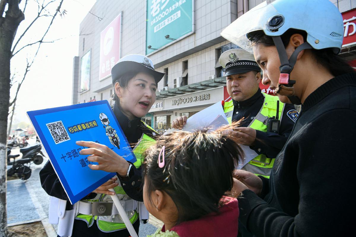 4月7日,安徽省馬鞍山市含山縣公安局交管大隊(duì)在城區(qū)開展電動(dòng)自行車和摩托車不戴安全頭盔、違法載人勸導(dǎo)查處整治行動(dòng)。