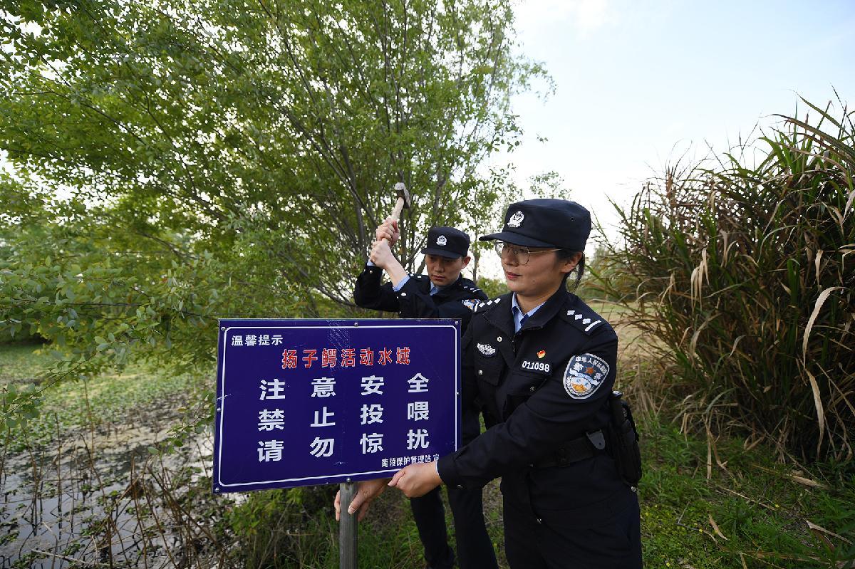 4月7日,安徽省蕪湖市公安局環(huán)境資源和食品藥品犯罪偵查支隊(duì)聯(lián)合南陵縣公安局環(huán)境資源和食品藥品犯罪偵查大隊(duì)民警,深入揚(yáng)子鱷國(guó)家級(jí)自然保護(hù)區(qū)核心區(qū)域南陵縣籍山鎮(zhèn)長(zhǎng)樂村,通過(guò)對(duì)揚(yáng)子鱷棲息地水質(zhì)進(jìn)行抽檢、安裝保護(hù)揚(yáng)子鱷宣傳牌、入戶走訪農(nóng)戶進(jìn)行保護(hù)揚(yáng)子鱷宣傳等多種方式,全方位保護(hù)揚(yáng)子鱷自然保護(hù)區(qū)生態(tài)環(huán)境。