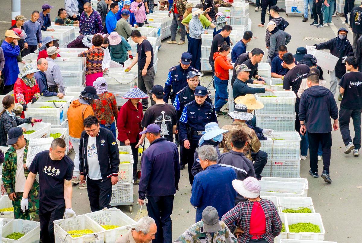 4月8日,浙江省長(zhǎng)興縣公安局和平派出所民輔警在和平鎮(zhèn)青葉交易市場(chǎng)進(jìn)行治安巡邏,提供便民服務(wù),全力護(hù)航茶農(nóng)茶商安全有序交易。