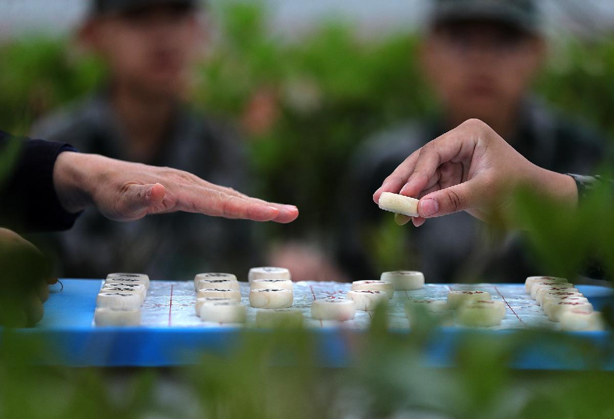 朱前方和孩子們圍坐對弈。