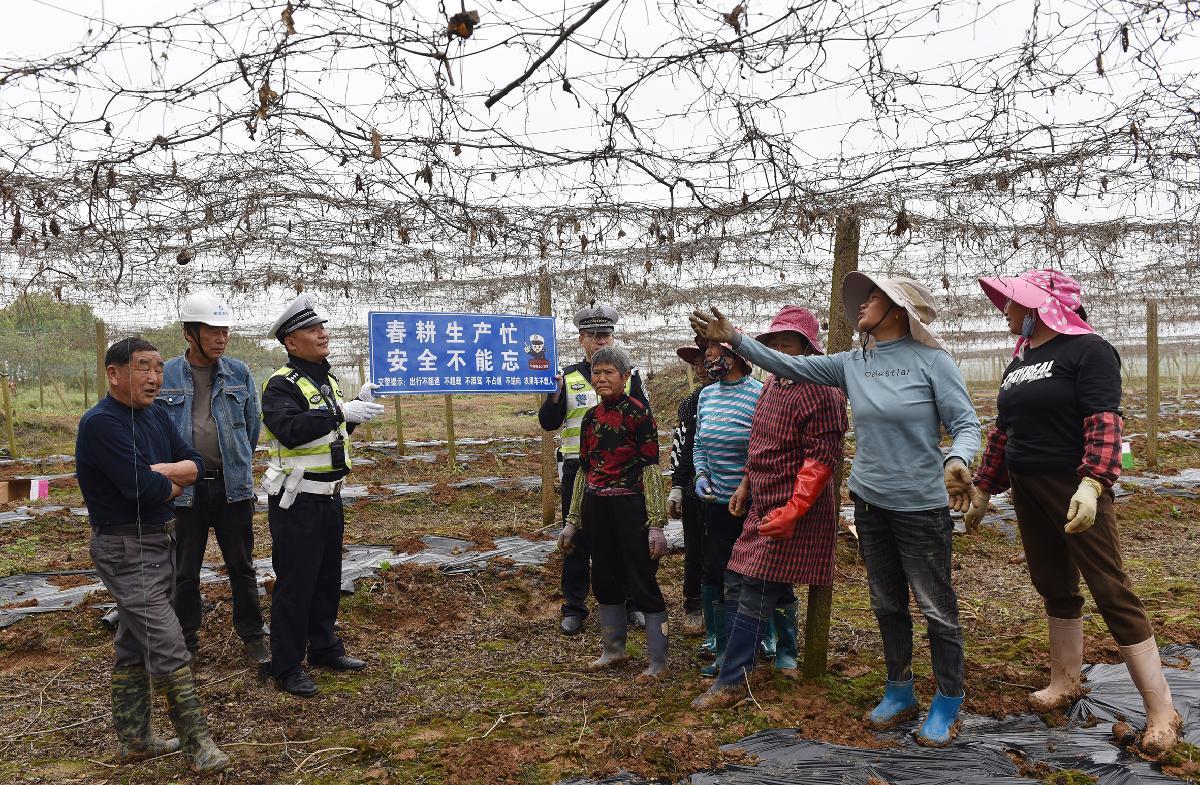 4月10日,安徽省宿松縣公安局交管大隊民警深入公路沿線田間地頭,進行春耕生產(chǎn)交通安全提示,守護村民出行安全。
