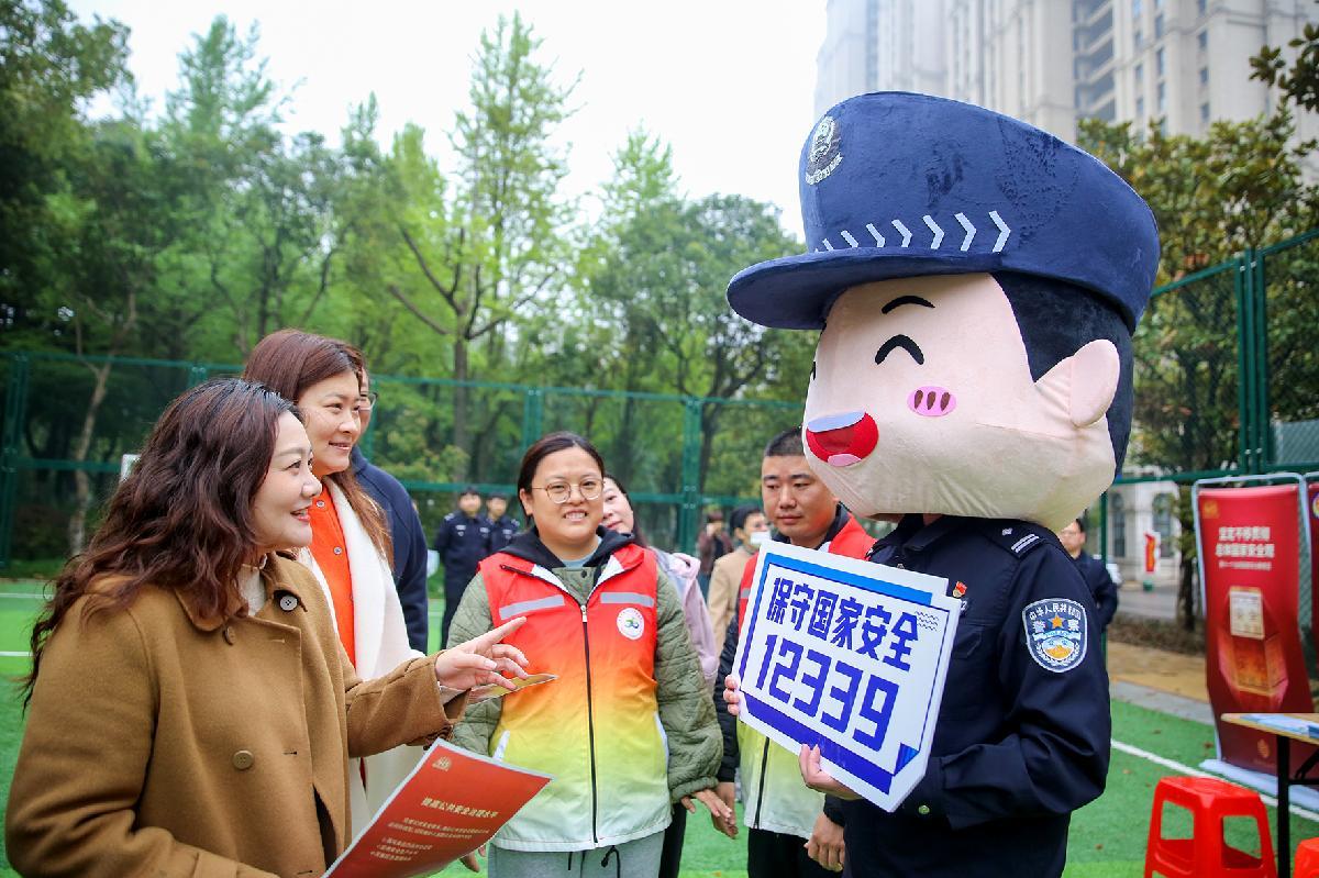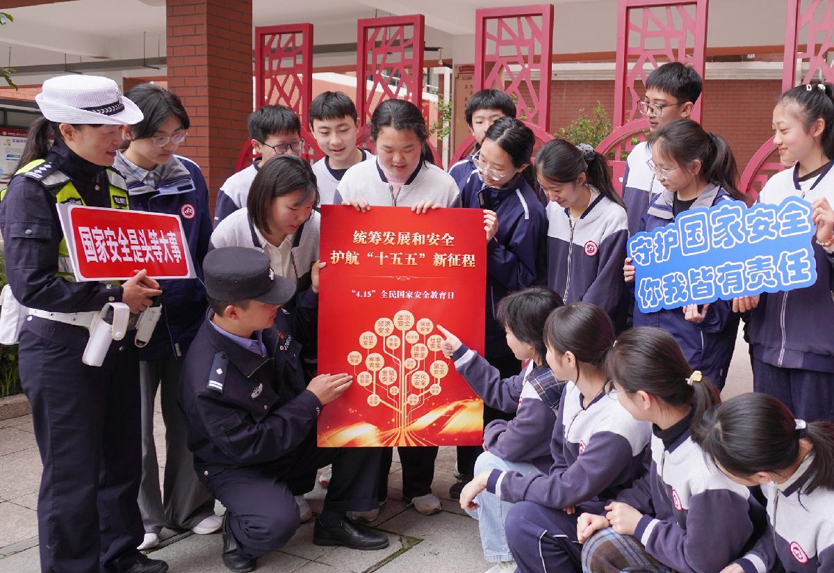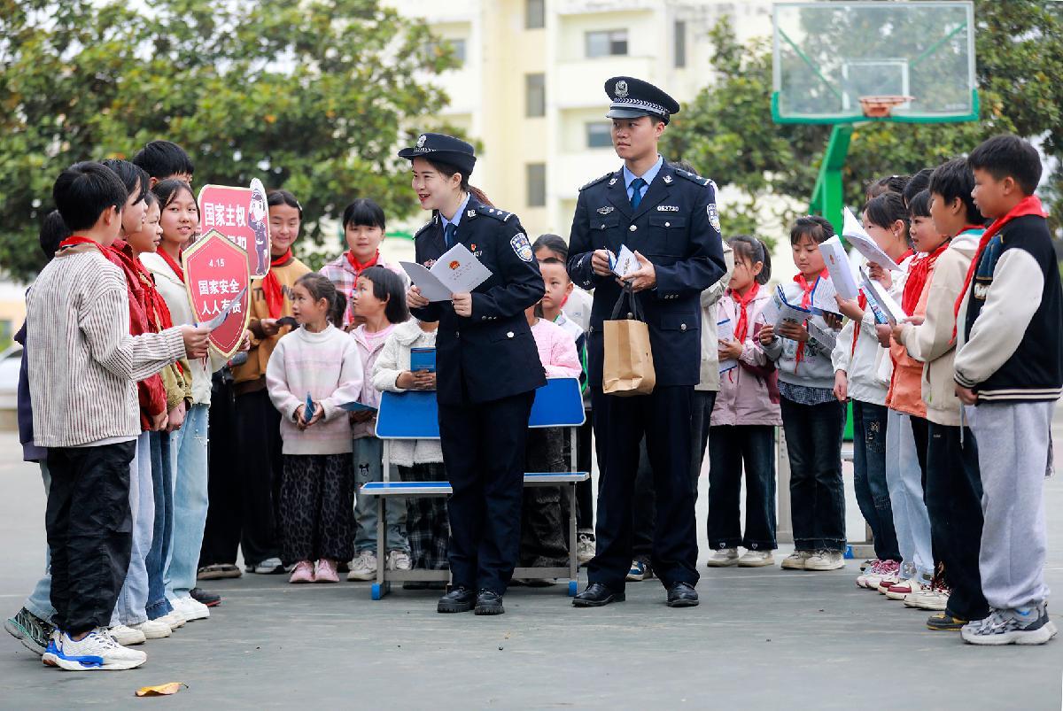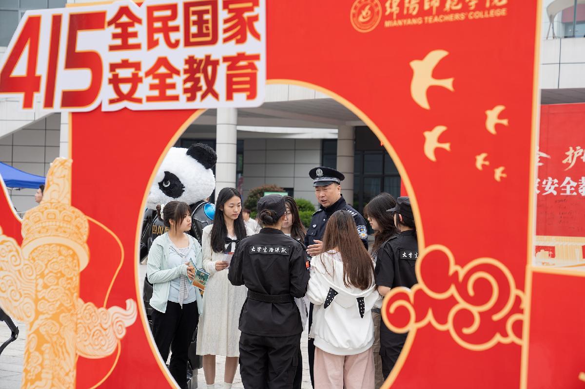 4月15日,在四川省綿陽師范學院,綿陽市公安局組織民輔警在學院廣場向學生講解國家安全相關知識,增強學生國家安全意識和素養(yǎng)。